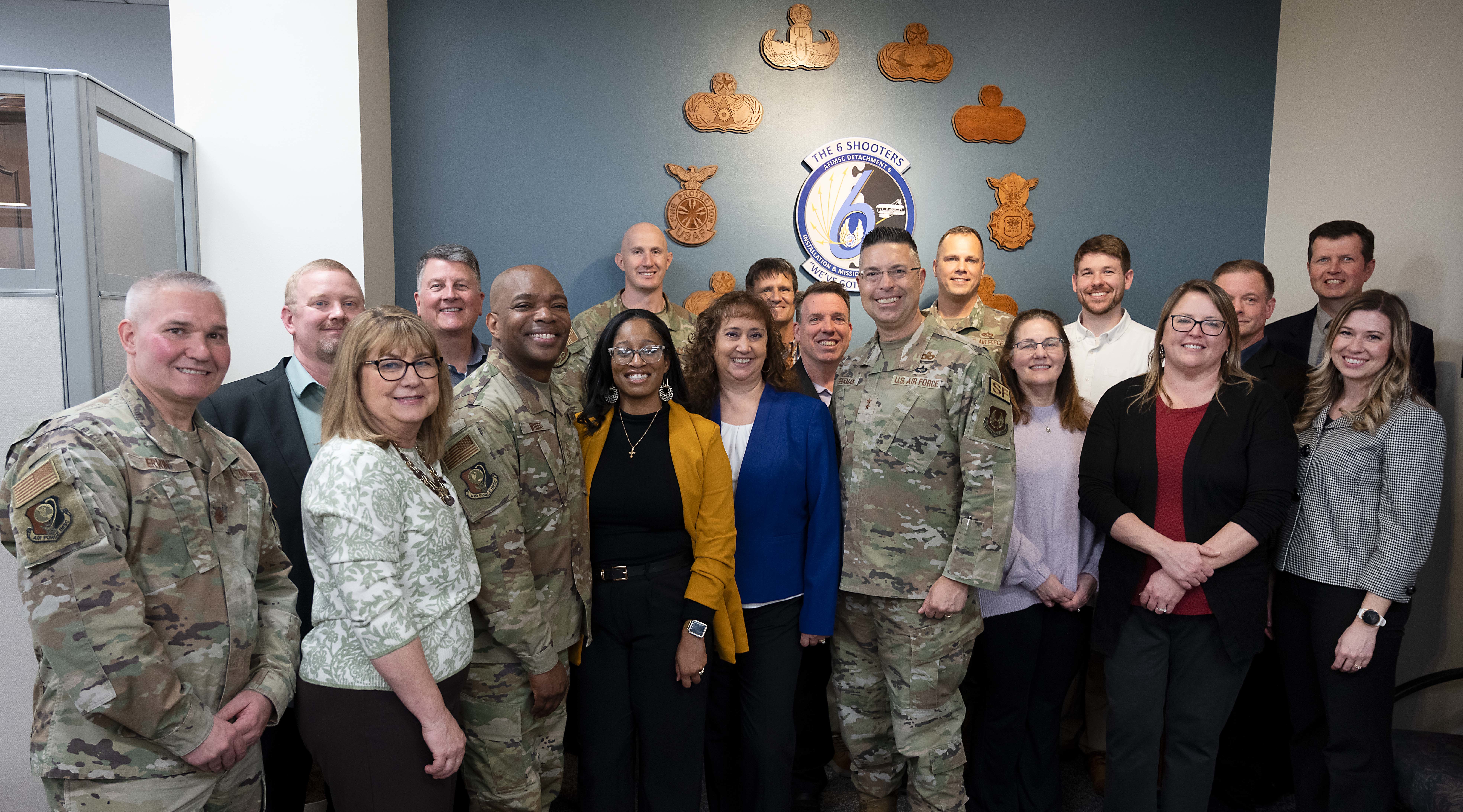 Maj. Gen. Thomas Sherman, commander, Air Force Installation and Mission Support Center, and Chief Master Sgt. Ronnie Woods, AFIMSC command chief, visited AFIMSC Detachment 6 at Wright-Patterson Air Force Base, Ohio, April 6, 2026, to meet with the team and recognize Airmen for their outstanding contributions to the mission.