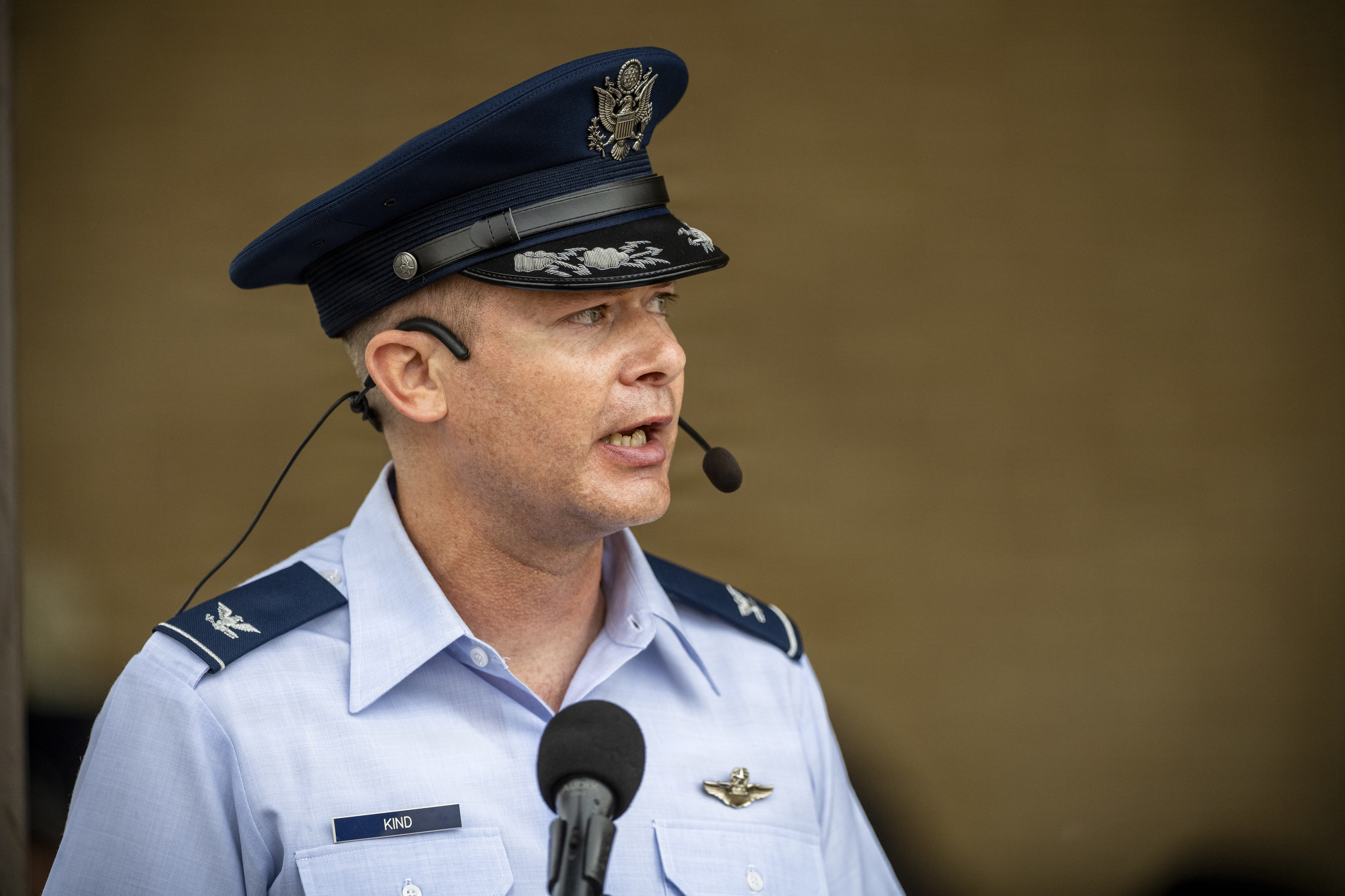 Col. Richard K. Kind, 97th Air Mobility Wing commander, and Chief Master Sgt. Jon T. Adams, 97th Air AMW command chief, from Altus Air force Base, Oklahoma, were at Joint Base San Antonio-Lackland, Texas, April 2 to preside over the Basic Military Training graduation ceremony.