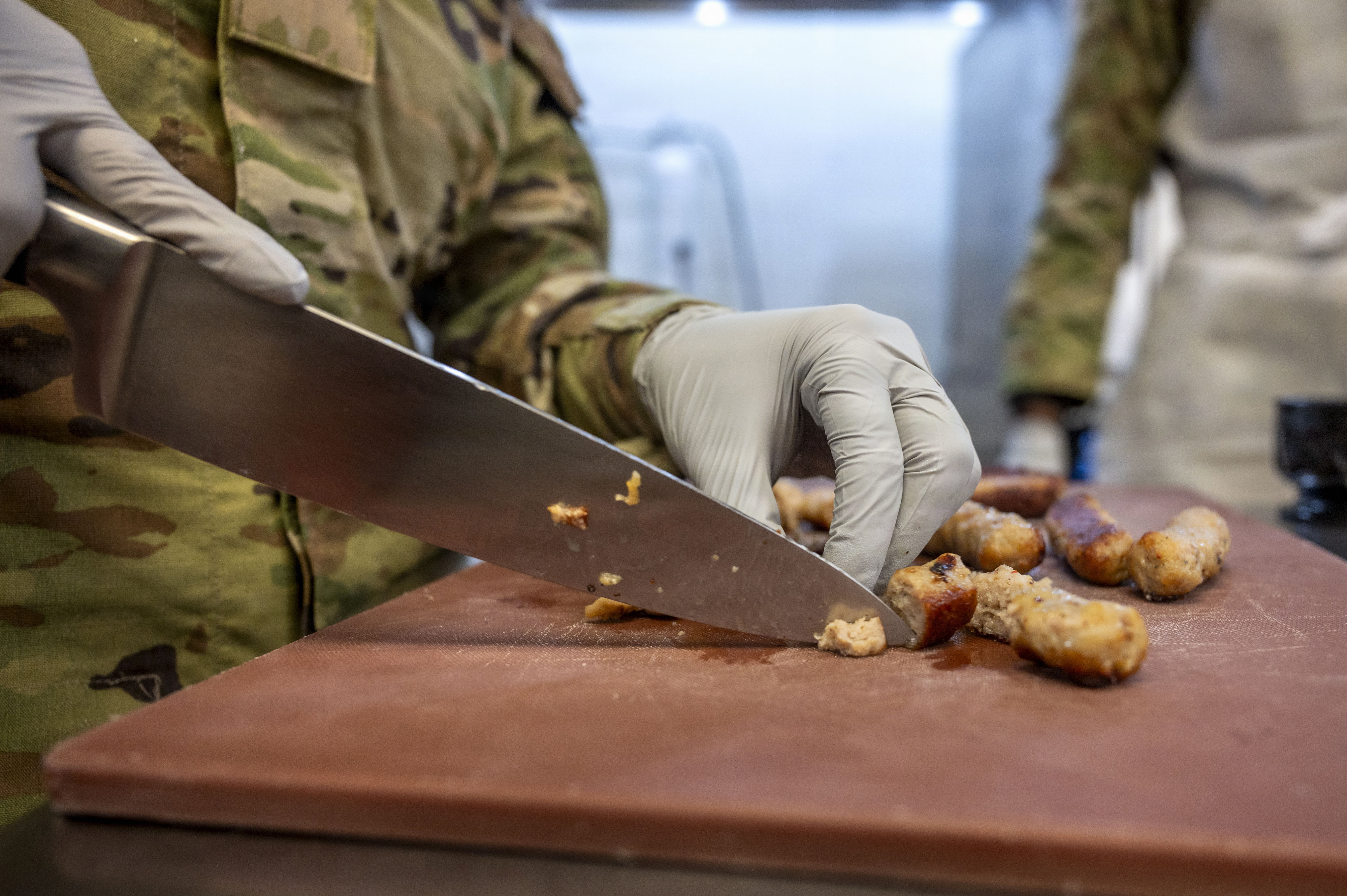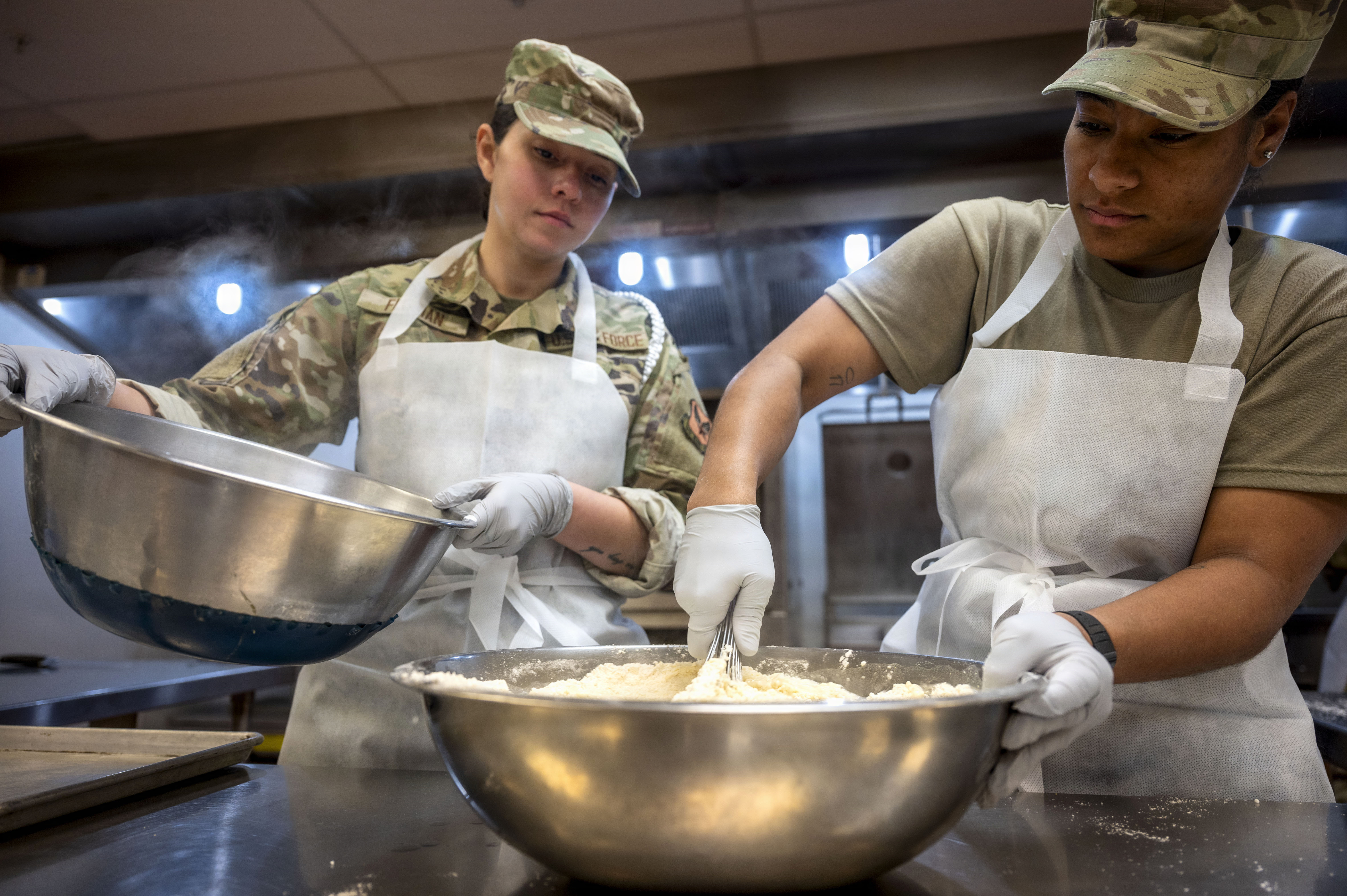 Medical Education and Training Campus Nutrition and Diet Therapy course students assigned to the 382nd Training Squadron worked on preparing specialized meals at Joint Base San Antonio-Fort Sam Houston on March 18 as part of their training.