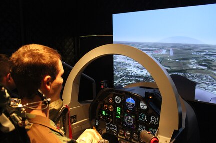 Civil Air Patrol Cadet Stephen Clark demonstrates his skills on a visual approach on the T-6 simulator on Joint Base San Antonio-Randolph Dec. 11. (U.S. Air Force photo by Lt. Col. Andreas K. Wesemann) (Released)