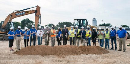 JOINT BASE SAN ANTONIO-RANDOLPH, Texas - 502nd Air Base Wing Leadership along with Randolph Field Independent School District personnel and project managers stand together for a photo at the Randolph Elementary School ground breaking ceremony at Randolph Air Force Base, Sep 17, 2020. The project will add additions to the existing elementary school for grades 2nd through 5th and will include a library and cafeteria. The project is expected to be finished by May of next year.
