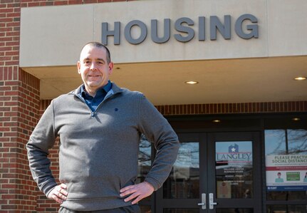 JOINT BASE LANGLEY-EUSTIS, Va. - Edward Keenan, 633rd Air Base Wing privatized housing resident advocate, stands in front of the housing office at Joint Base Langley-Eustis, Virginia, Feb. 25, 2021. Keenan advocates for a positive living experience on behalf of residents of Bethel Manor, Lighter-Than-Air and Heavier-Than-Air housing areas. (U.S. Air Force photo by Staff Sgt. Chandler Baker)