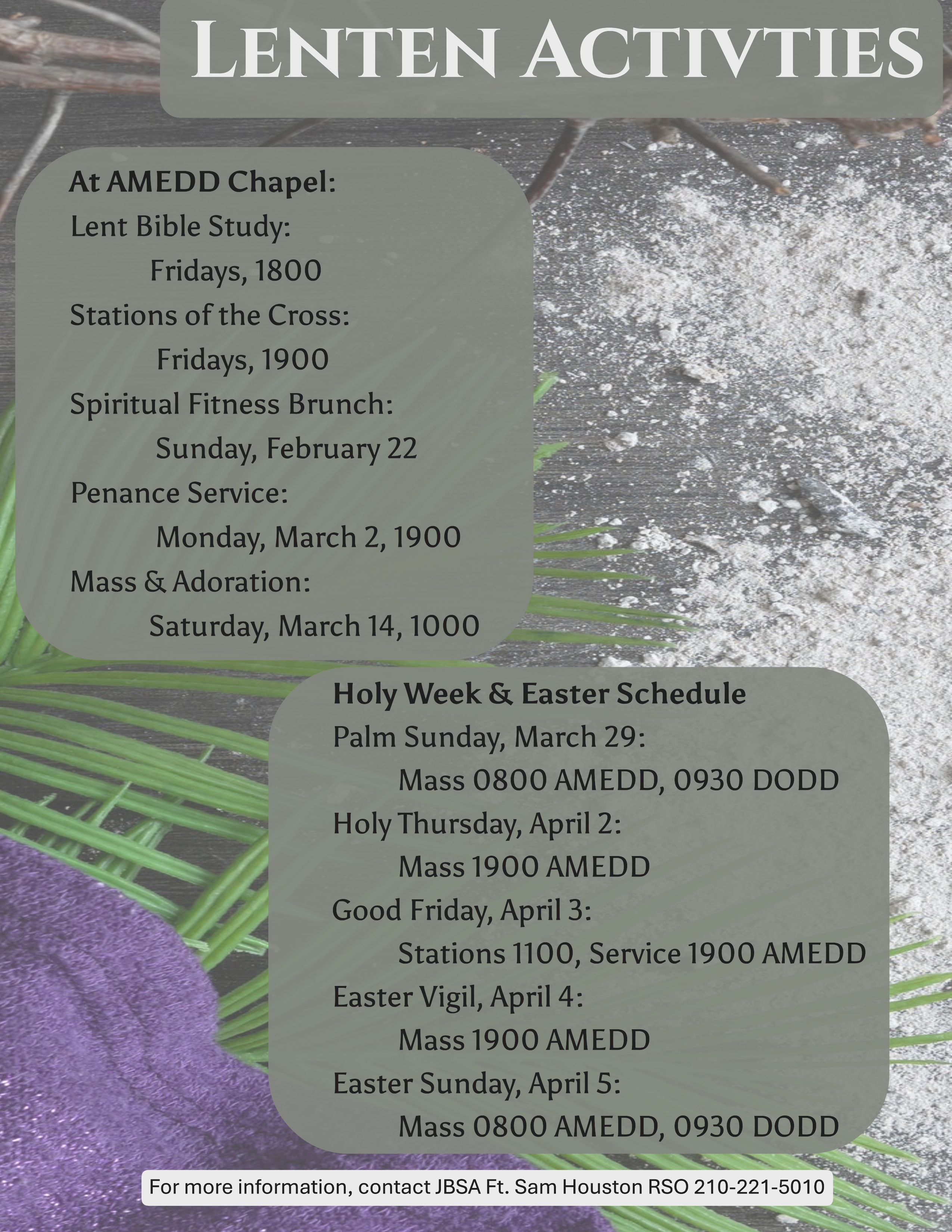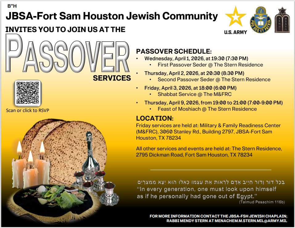 For more information or to request religious support at JBSA-Fort Sam Houston, contact 210-221-5010 or email at FSHReligiousSupportOffice@army.mil.